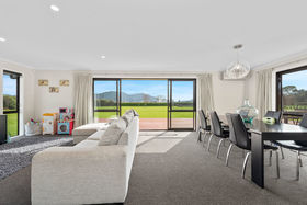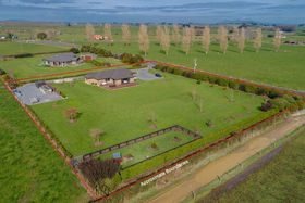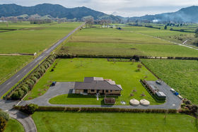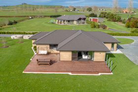 Beautifully presented hi-spec modern brick home on 5500m2 of landscaped grounds surrounded by rural vistas. Positioned to maximise north-facing living and boasting superb indoor-outdoor flow to expansive decking, this is a home where you will enjoy entertaining family and friends. Thoughtfully planned for comfort and family dynamics, with tasteful decor The chef's kitchen is highly spec'd with quality appliances and stone benchtop plus a walk in pantry. Quality fittings abound in this superior home. The easy flow floorplan works for family, with huge open plan living. Featuring three double bedrooms plus office nook, separate laundry, main bathroom, and ensuite. The vendors will be sad to leave behind their abundance of fruit trees; lime, lemon, mandarin, orange, plum, nectarine, feijoa, pear and apple, and the stunning rural views. They are also leaving their 'designer' chicken run, if you enjoy fresh eggs for breakfast you may want to fill it again with your own free-range chooks. So many options and room for plenty of outdoor activities and pets. The landscaped manicured grounds and elegant plantings ensure privacy from the road so that you can enjoy your own private park. With raised vegetable gardens ready for planting in spring you can enjoy gathering fresh produce for your social gatherings. You will be impressed as you enter via the electronic gated entrance to this sumptuous property. Please phone Cathy 0800 228 495 or Maureen 027 584 2651 to arrange a private viewing.