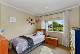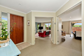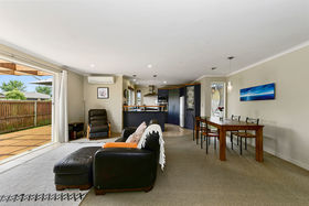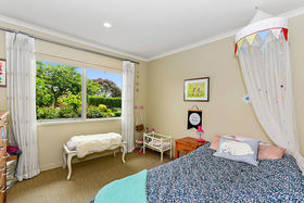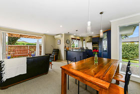 The smart 190 sqm floor plan features a separate dual aspect lounge with a cosy gas fireplace and a large family dining room with access to a sun drenched north facing deck and three heat pumps. The gardens are a real feature of the property and give the house a sense of space and privacy from neighbours.