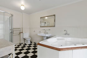This elegant manor, anchored on a 5001sqm block with uninterrupted river frontage, is the recipe for happy lifestyle living and grand entertaining. Eye-catching in every aspect, it invites you to idyll in utmost contentment against the beauty of the countryside and river scenery. The home shows strength of character, with a two-storey brick exterior, pillared entranceway and stately driveway that opens to a huge forecourt and three-car garage.