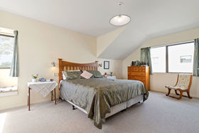 This ample architecturally designed home is bright and warm, with chapel ceilings and lots of sunlight to every room. The hub is a generous family room, incorporating a spacious recently-updated kitchen, dining space plus a socialising area. A large separate lounge also opens onto the north-facing easy-care garden. The downstairs double bedroom could also serve as an office or TV/media room.