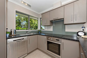 An easy to maintain 155sqm brick home features open plan living with views across the formal gardens, an en suite to bedroom one and internal access double garaging.